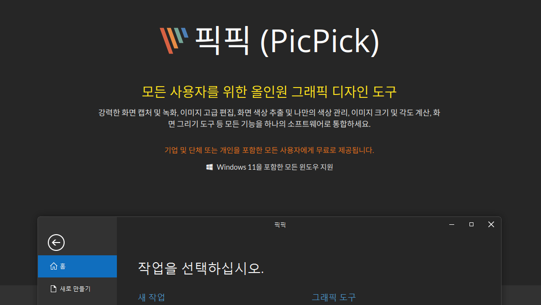 picpick은 개인과 기업, 관공서도 모두 무료로 사용할 수 있습니다.