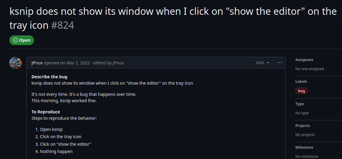 ksnip does not show its window when I click on "show the editor" on the tray icon · Issue #824 · ksnip/ksnip