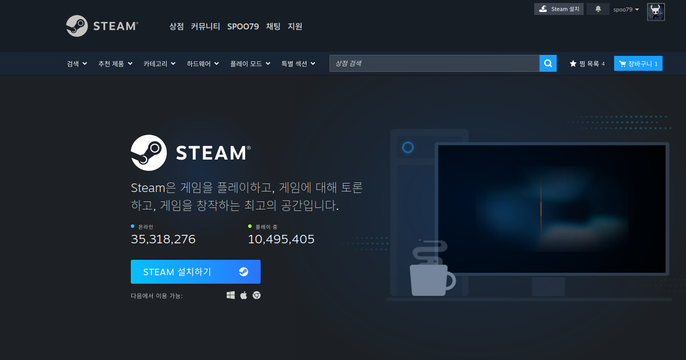 스팀 사이트에서 설치 파일을 받았습니다.