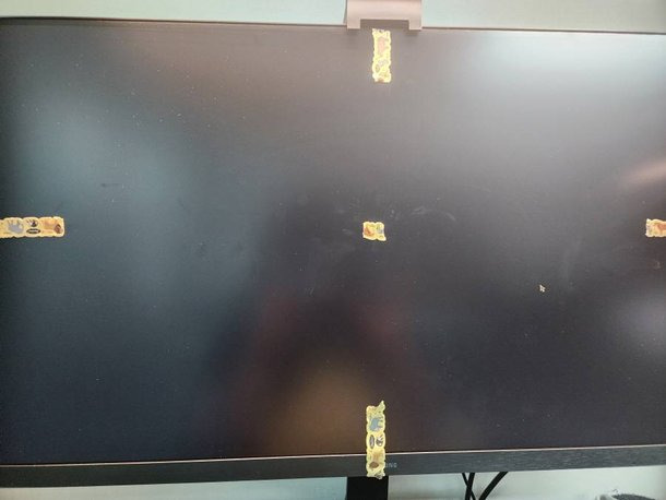 실제로 아래 사진 속 모니터처럼 스티커 상하좌우 중앙에 붙여주면