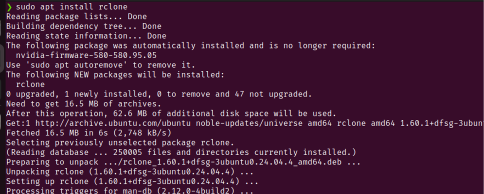 sudo apt install rclone