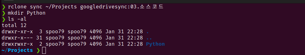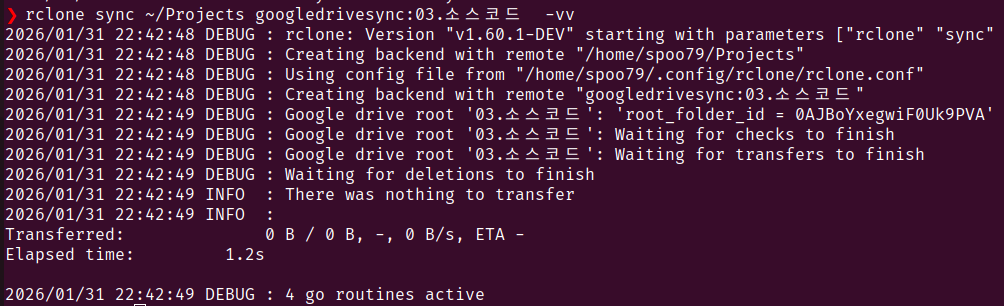 rclone sync ~/Projects googledrivesync:03.소스코드