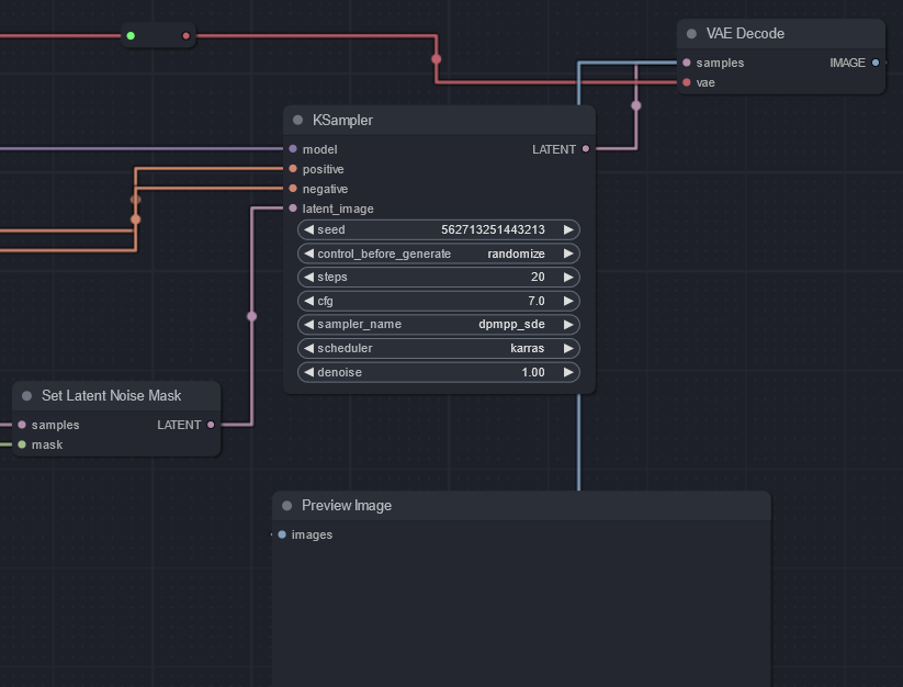 9. Set Latent Noise Mask Node의 LATENT는 새로 추가한 KSampler의 latent image와 연결해 준다.