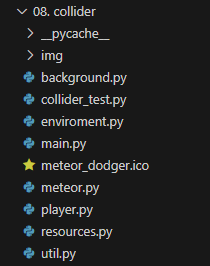 충돌하는 부분에 대해서 로직도 추가하자. 우선 간단하게 pygame 자체 내장된 두 sprites에 대한 충돌 검사 로직인