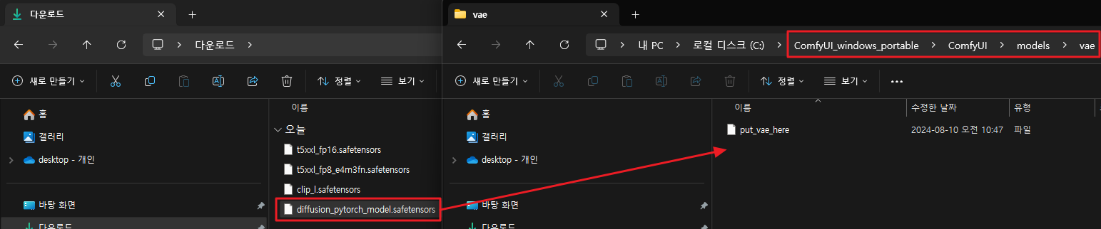 ComfyUI > models > vae 경로로 이동시킨다.