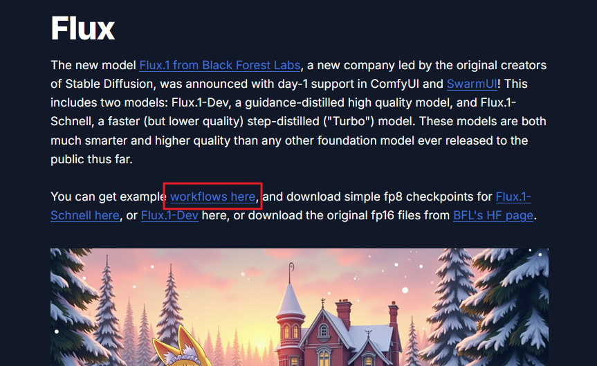 사이트 중간에 보면 Flux.1-Schnell here, or Flux.1-Dev 이 두개의 링크가 보일 것이다.