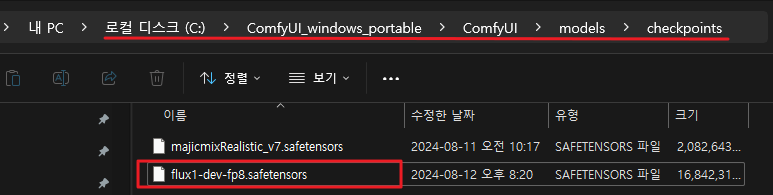 ComfyUI의 checkpoints 폴더로 붙여 넣어준다.